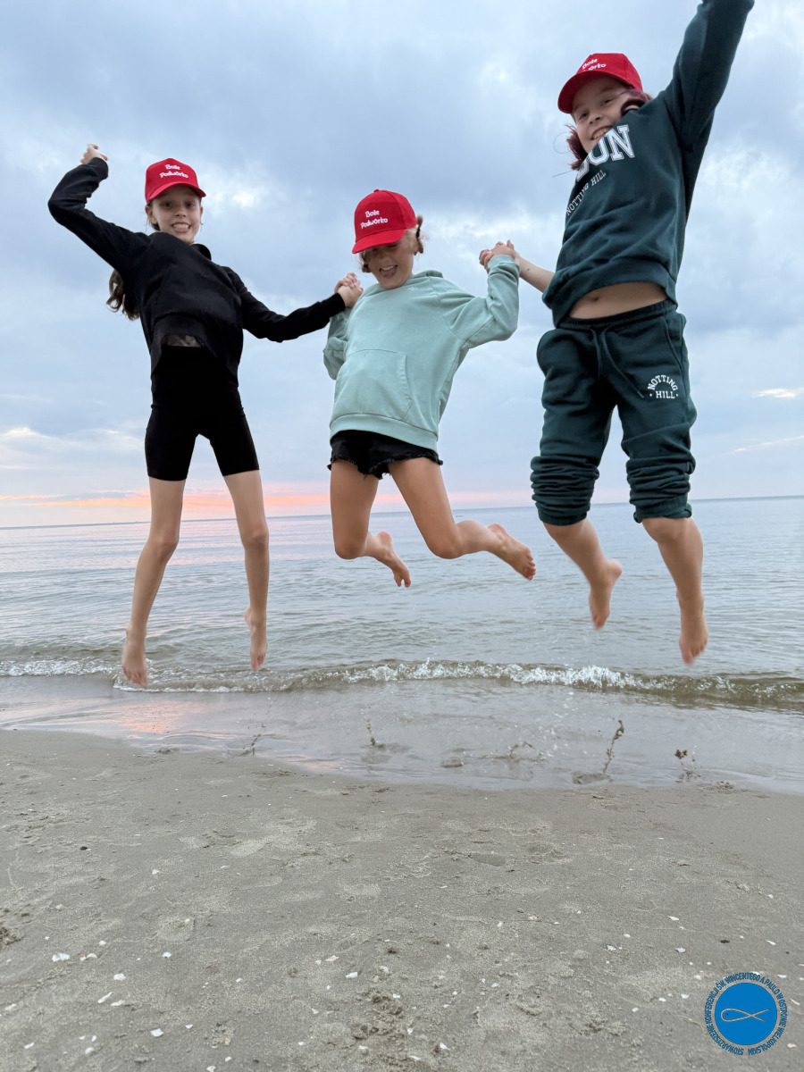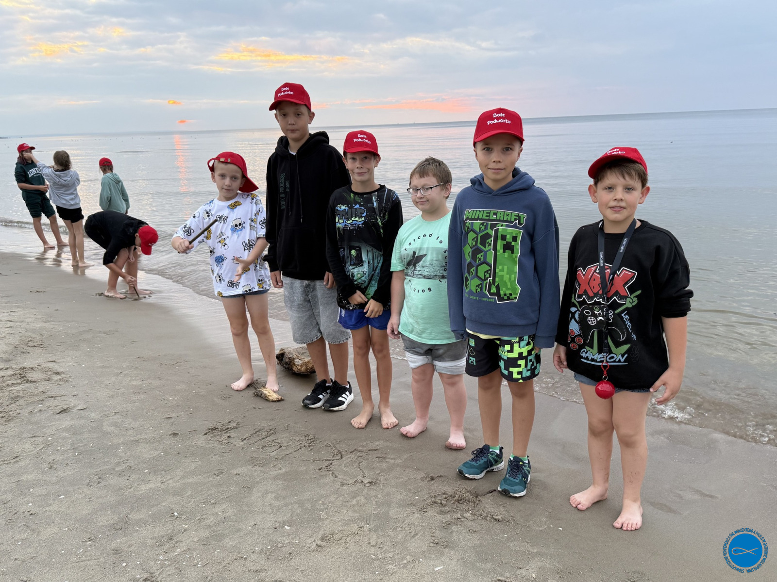 Plażowanie, kąpiele w morzu i budowanie z piasku to oczywiście nieodłączny element naszych wakacji. Codziennie rano, pełni energii, wyruszaliśmy na „rozruch poranny” – gimnastykę na świeżym powietrzu, która dodawała nam sił na cały dzień. Zdobyliśmy też nowe doświadczenia podczas wyprawy łodzią motorową, podziwiając foki w ich naturalnym środowisku. Nawet jazda meleksem w deszczu okazała się świetną zabawą!