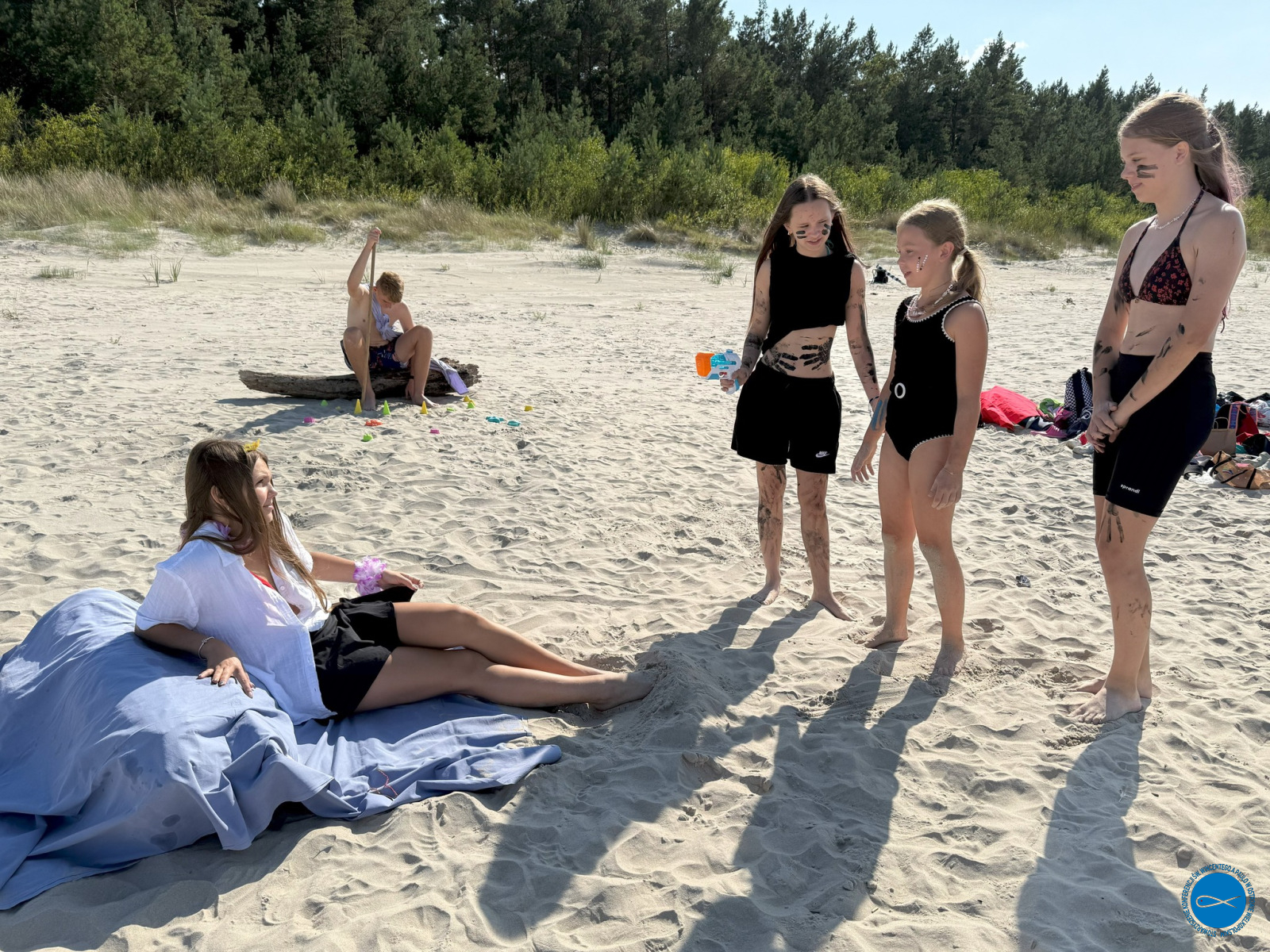 Nasze dni były wypełnione mnóstwem aktywności! Wzięliśmy udział w emocjonującym Laserowym Paintballu i spróbowaliśmy swoich sił w łucznictwie. Sportową rywalizację zapewnił tradycyjny mecz siatkówki „koloniści kontra kadra”, a także mecz „dziewczyny kontra chłopaki”, który zakończył się sprawiedliwym remisem! Odbył się także Chrzest Morski, a prawdziwym hitem okazała się jazda konna – niektórzy odkryli w sobie nową pasję!
