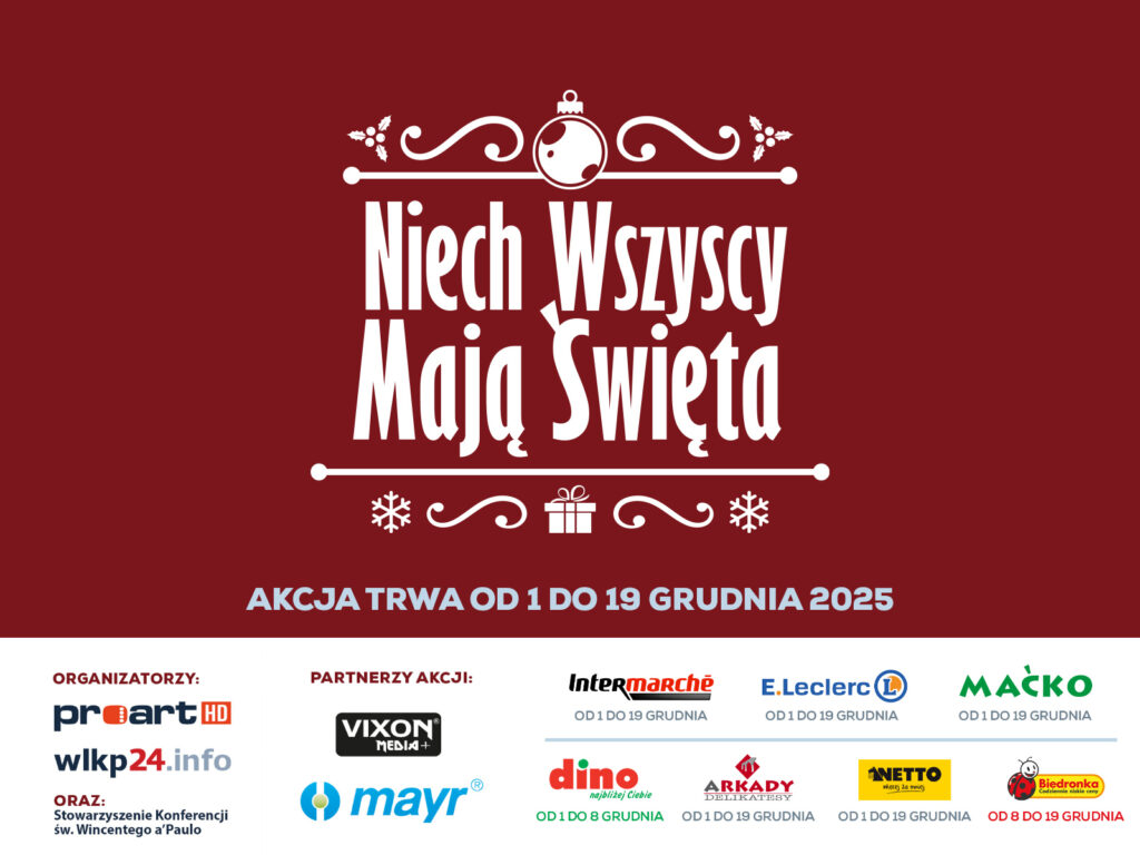 Jak co roku w okresie przedświątecznym można pomóc najbiedniejszym mieszkańcom Ostrowa Wielkopolskiego. A to za sprawą akcji „Niech Wszyscy Mają Święta” organizowane wspólnie przez Stowarzyszenie Konferencji św. Wincentego a’Paulo i Telewizję Proart oraz portal wlkp24.info.