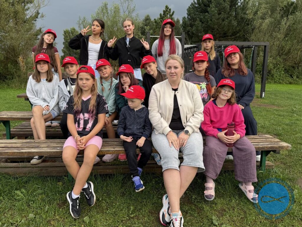 Do pozdrowień dołączamy zdjęciach naszych uśmiechniętych kolonistów w pięknych czapeczkach z napisem „Boże Podwórko”. Czapeczki to nie tylko stylowy dodatek, ale też jeden z wyjątkowych prezentów, który otrzymały wszystkie dzieci uczestniczące w tegorocznym wypoczynku. Serdeczne podziękowania kierujemy do firmy Mercedes-Benz Garcarek, dzięki której ten drobny gest stał się ogromną radością dla najmłodszych.
